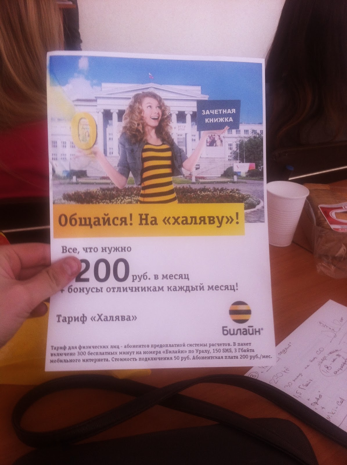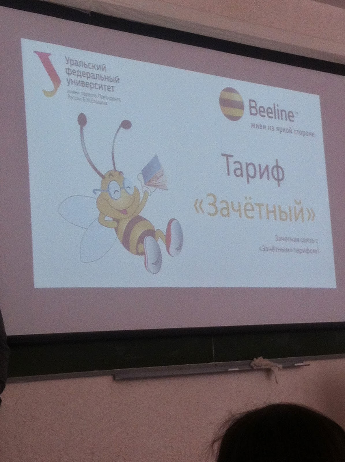 В Екатеринбурге есть Уральский федеральный Университет в котором учится порядка 60000 студентов. И Билайн решил сделать для этих студентов отдельный тариф. Но не просто собраться в своих желто-черных кабинетах, что то там посчитать и выпустить тариф на рынок, а позволить самим студентам создать его. Был объявлен конкурс, в котором могли участвовать студенты университета, которые прислали более 20 работ. Комиссия отобрала семь лучших и в субботу 12 апреля собрала команды в одной из аудиторий, чтобы участники смогли доработать свои проекты.