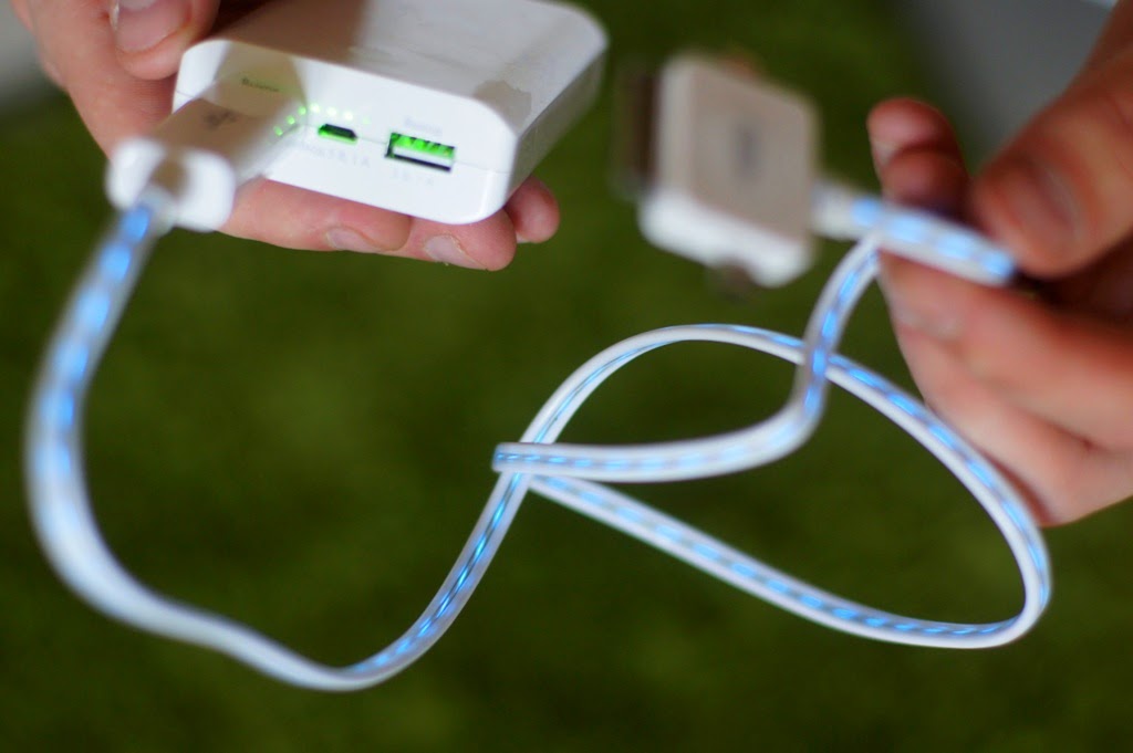 К плюсам такой подсветки можно отнести то, что, как только ваш телефон зарядится, вы сразу это увидите, а минус в том, что ночью такая подсветка может вам мешать. Естественно, этот кабель работает и с другими «банками», или любым другим устройством с USB. Хотел сейчас снять видео, как «бегут диоды», но в офисе так ярко, что ничего не видно.